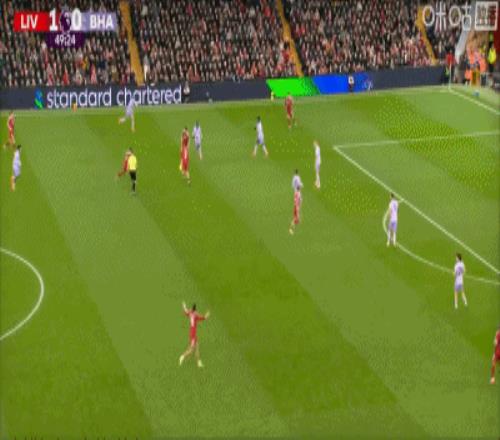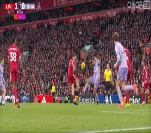 第1分钟,闪电战!埃基蒂克接戈麦斯头球抽射破门,利物浦1-0领先布莱顿!